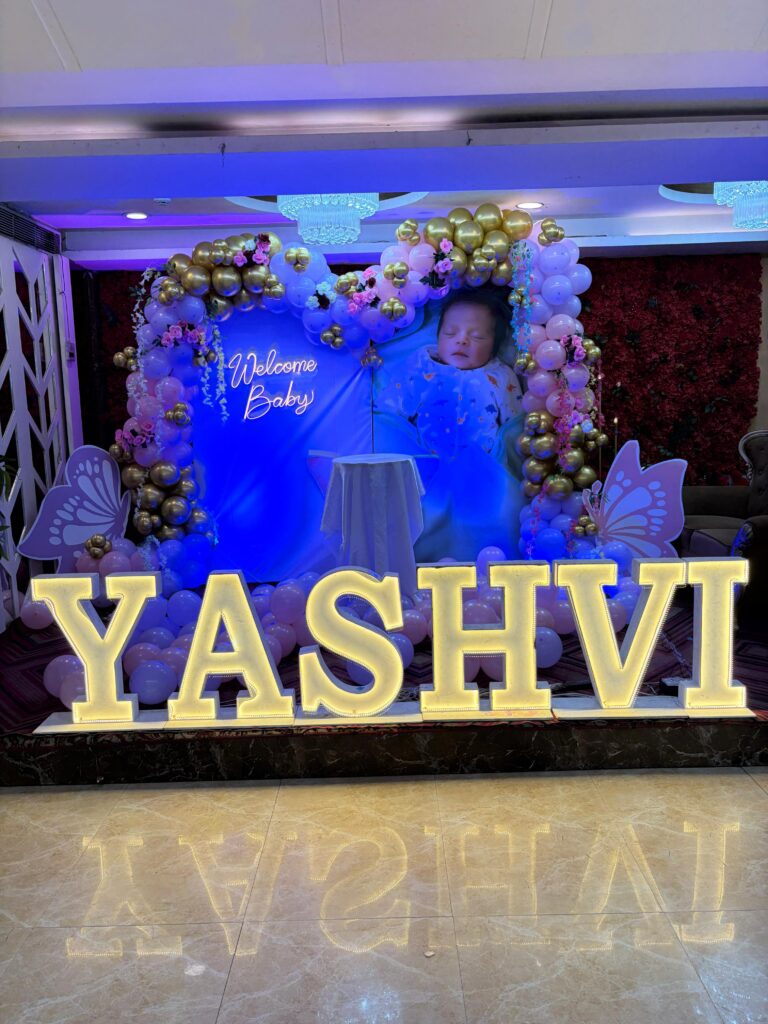 Our decoration services are designed to transform your special occasions into unforgettable memories. Whether you are planning a birthday party decoration, anniversary room decoration, baby shower decoration, haldi ceremony decoration, or romantic surprise decoration, our expert team ensures a stunning and elegant setup using premium balloons, creative backdrops, LED lights, and theme-based decoration designs.